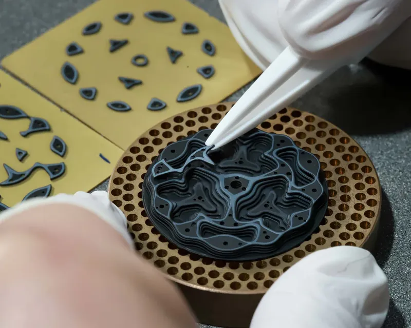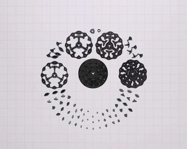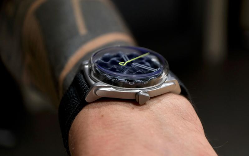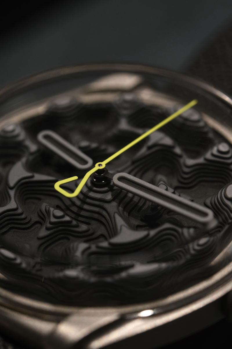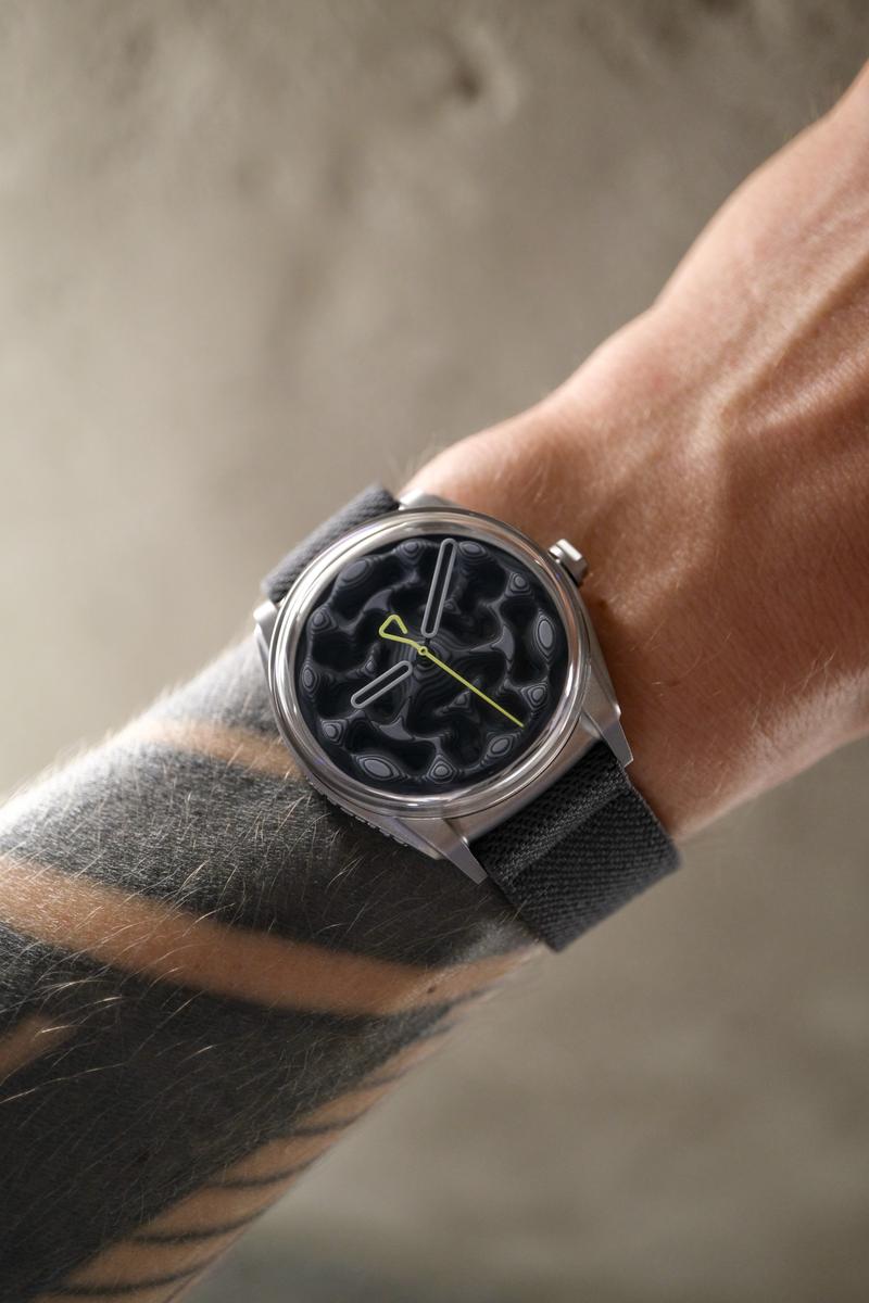 The watch you see here, the Projekt 02 Variant B features a dial with 67 small plates, that are hand assembled and hand-painted.