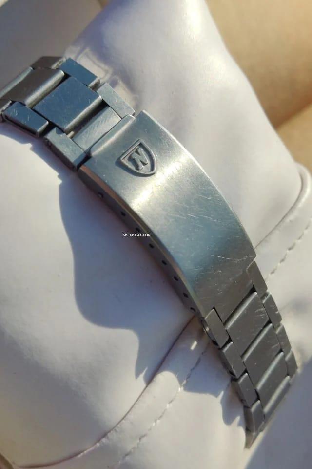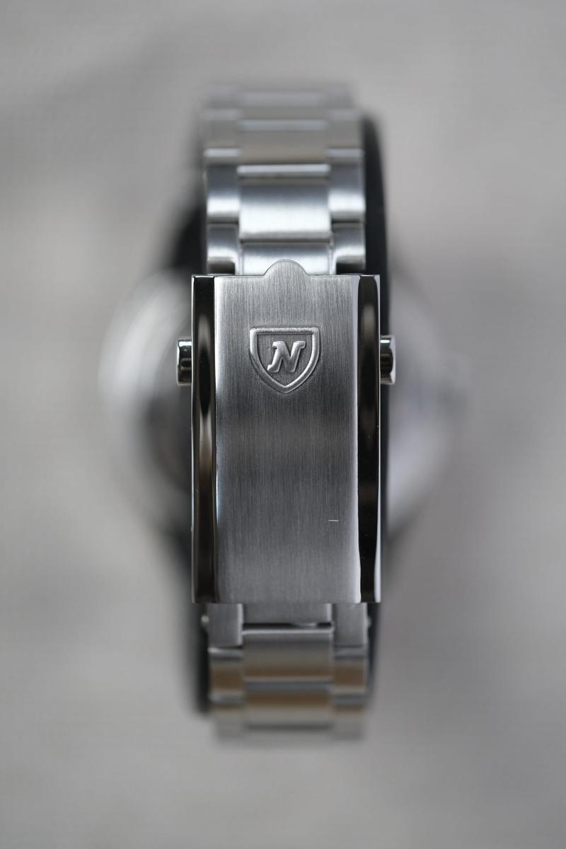 The design is somehow similar to the historic model, just a bit more usable with the half-round extension of the clasp, that makes it easier to open. The middle part is polished while the sides of the clasp are polished. The Nivada crest is embossed and not just lasered onto the surface.